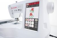 Macchina per cucire e ricamare con area ricamo 170x100, ampio schermo touch screen a colori con possibilità di modificare e combinare i disegni. 150 ricami già inclusi oltre ai 10 font di ricamo e 250 punti per cucire.