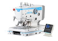 Macchina occhiellatrice, punti simmetrici e precisi negli occhielli e nei cerchiolini adatta a giacche e pantaloni. L’utilizzo della macchina è semplicissimo e avviene con un singolo pedale multifunzione: chiusura pinze e avvio cucitura. Il puntatore laser (F41) optional ed il piano di lavoro con scala graduata garantiscono un posizionamento del lavoro preciso. Profondità del piano di lavoro da 120mm per facilitare operazioni coi capi ingombranti. Nuovo display con tasti funzione a portata di un tocco.