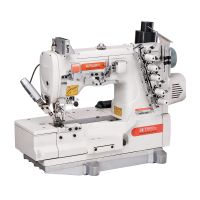 Macchina a base piana 4 aghi e 6 fili, tipo di punto 607, motore diretto, velocità max. del motore 6.000 giri al minuto. Trasporto differenziale facilmente regolabile, lubrificazione automatica. Per cucitura piana a 4 aghi.