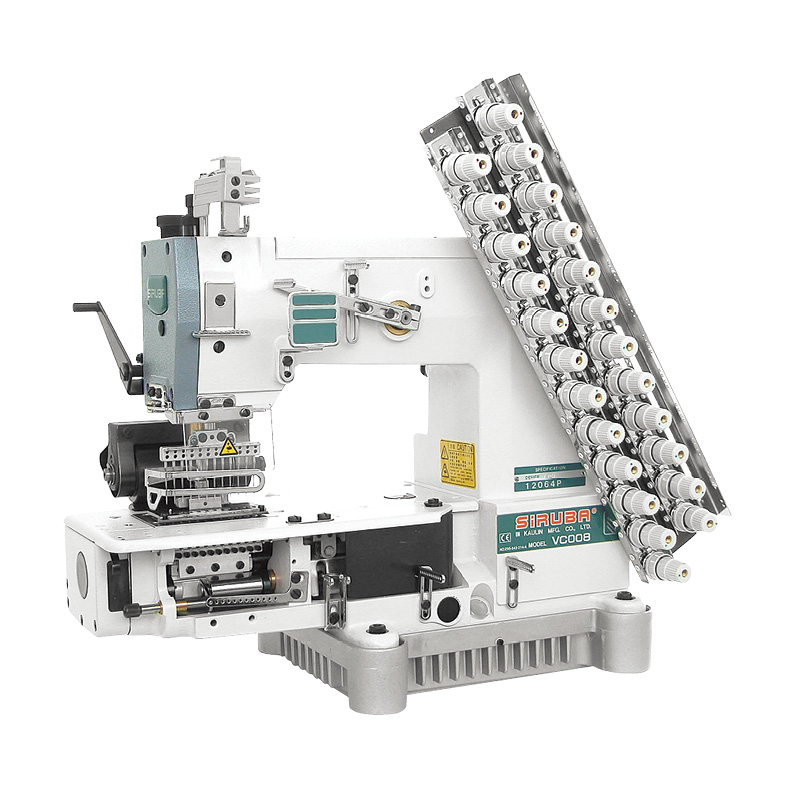 Macchina cilindrica con punto catenella e puller, tipo di punto 401, velocità max. del motore fino a 4.500 giri al minuto. Macchina cilindrica, doppio punto catenella, puller posteriore, lubrificazione automatica. Lunghezza del punto regolabile tramite pulsante. Adatta per cuciture decorative su abiti di alta qualità o merci tubolari.