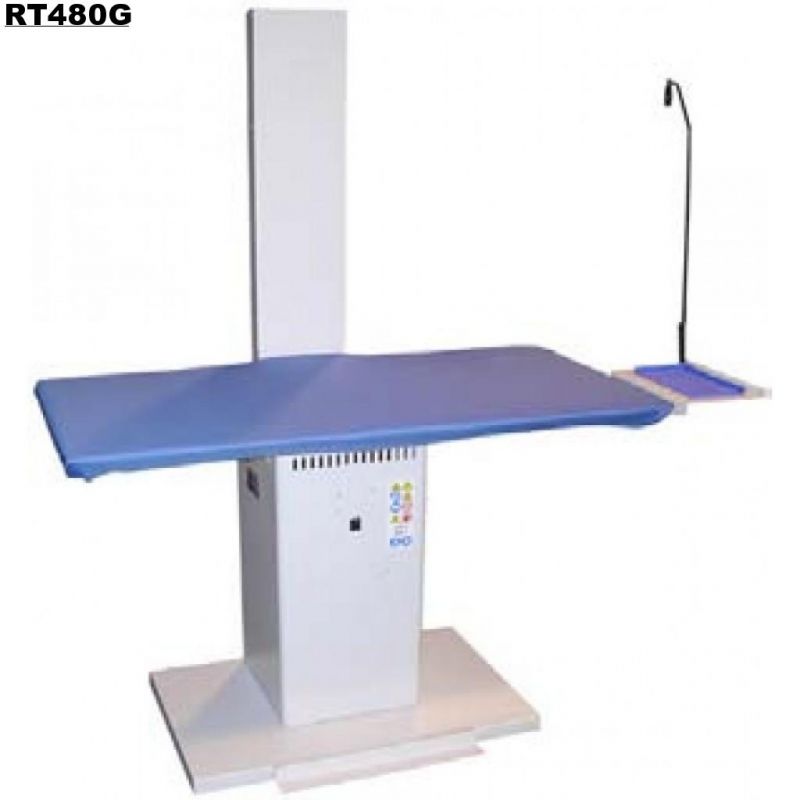 Riscaldato per mantenere asciutta la superficie di lavoro. Forma rettangolare per funzionamento multiuso. La ventola di aspirazione è integrata e mantiene il capo in posizione e asciuga il tessuto dopo aver premuto. Dimensioni standard 130 x 65 cm.