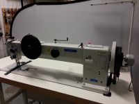 Macchina triplice trasporto a braccio lungo, efficiente e potente. Cucitura pulita e punti stretti anche durante la lavorazione di fili spessi e materiale pesante. Cicli di cucitura lunghi senza cambio spolina grazie al crochet verticale sovradimensionato ad elevata capacità anche in caso di fili spessi. Grande maneggevolezza del lavoro anche di pezzi ingombranti e di grandi dimensioni grazie all'ampio spazio sottobraccio privo di ostacoli. Per cucire materiali molto pesanti come pelle, divano, tela, vinile, sintetici e vari tessuti rivestiti, laminati e gommati. Adatto a cucire tende, teloni, tende da sole, vele, coperture per camion, tappezzeria per auto, coperture per campi, strutture in tessuto e prodotti pesanti e voluminosi.