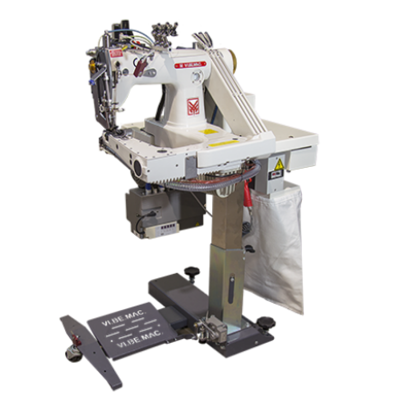Macchina a braccio V2261HP con punto catenella a 3 aghi, ideale per tutte le operazioni di doppia cucitura sul pantalone jeans, casual, da lavoro e perfino camicie. Questa macchina è particolarmente consigliata per le operazioni di cucitura del carrè, del cavallo posteriore, interno ed esterno gamba, più ovviamente quelle di ribattitura. Lo speciale sistema di trasporto a cinghia, garantisce un carico velocissimo e una perfetta combaciatura tra le parti. sistema brevettato (DCP) ha finalmente risolto il problema del sollevamento dei punti sulla parte più spessa del davanti (cavallo). Altre importanti caratteristiche sono: il sistema di rasa filo aspirante, che permette di lavorare in ambiente pulito e sgombro da polvere e l'altezza regolabile della macchina, per posizionarla all'altezza più congeniale.