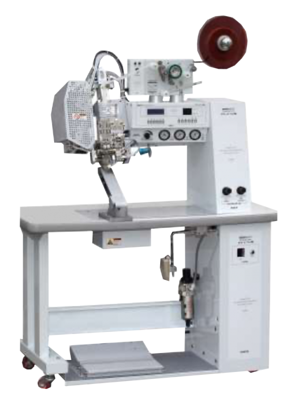 Macchina termosaldatrice con funzione di taglio-inserimento nastro automatico: utile per impermeabilizzare una cucitura. È inoltre possibile effettuare la regolazione del trasporto in modo indipendente del rullo trasportatore superiore ed inferiore. Adatta per l’applicazione del nastrino su abbigliamento tecnico, articoli sportivi e borse.