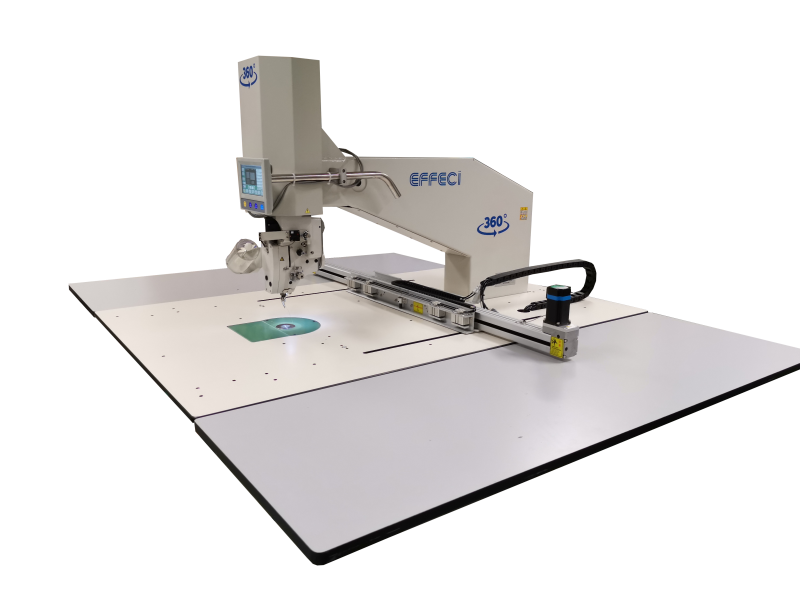 Macchina a campo con testa rotante e ampio campo di cucitura 1000x600cm, braccio lungo per cuciture precise, la testa ha rotazioni infinite. L’ alzata e discesa della testa èpneumatica. Grazie all’ampio spazio di lavoro consente l’elaborazione di diversi tipo di lavori con la stessa dima. Pannello di controllo facile da usare e consente di creare cuciture.