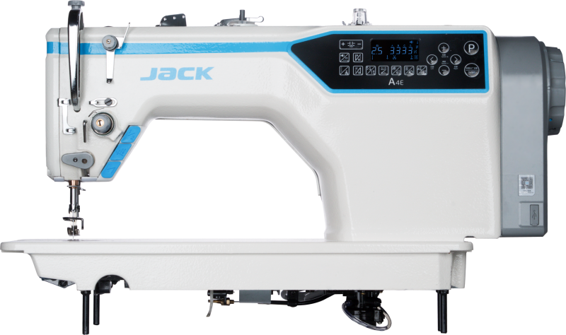 Jack A4E Lineare computerizzata con controllo digitale della lunghezza del punto controllata da motorino passo passo, con rasafilo automatico, alzapiedino, fermatura digitale silenziosa e taglio del filo corto. Bacinella olio staccata.