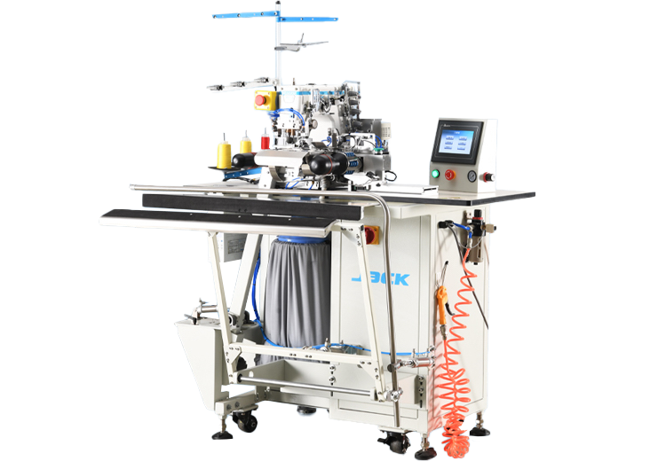 Jack AT-510. Macchina per cucire in automatico l’orlo fondo delle t-shirt. Carica la maglia sui rulli, automaticamente le fotocellule riconosceranno il capo e lo metteranno in tensione prima di auto allinearlo e cucire l’orlo. Il controllo dell’unità avviene da pannello touch screen e permette di inserire settaggi personalizzati che auto adatteranno la macchina. Non mancano i test di cucitura, delle guide, dei rulli, dell’alzapiedino e del rasafilo della Jack K6 ovvero la testa di cucitura 3 aghi più performante di Jack.