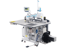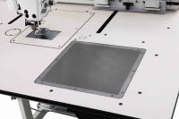 Jack M5. Macchina a campo di medie dimensioni, nuovo concetto di macchina a campo con piatto aspirante per facilitare il caricamento della dima. Lettura rapida del programma grazie alla lettura RFID del programma di cucitura. Sportello rapido e veloce per cambiare la spolina. La tensione elettronica puo’ garantire una cucitura pulita durante l'avvio della lavorazione e durante il taglio.