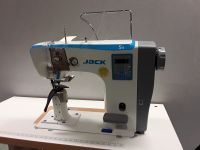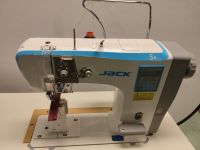 Jack S5. Macchina a colonna con trasporto a doppia rotelle sincronizzate, adatta per la cucitura di scarpe in pelle, scarpe sportive, valigie, borse, guanti, prodotti in pelle come vestiti, cappelli, ecc. La nuova leva allungabile della fermatura può essere controllata dal braccio durante la cucitura. Motore integrato potente, puo’ perforare più di 110 fogli.