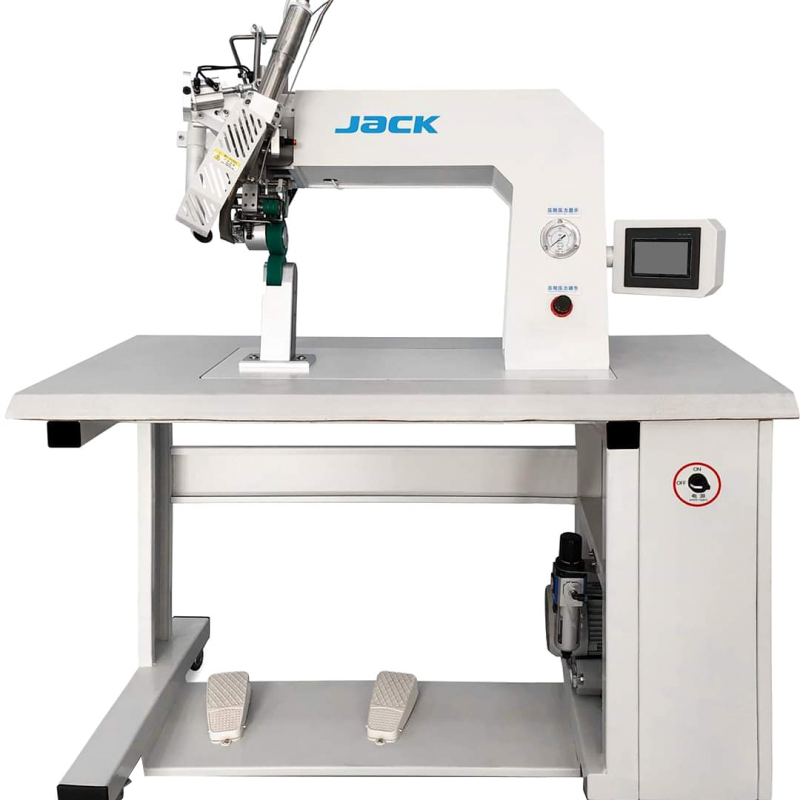 Macchina termosaldatrice computerizzata con funzione di taglio-inserimento nastro automatico. I rulli trasportatori sopra e sotto sono perfettamente sincronizzati. Adatta per l’applicazione del nastrino ed impermeabilizzare abbigliamento sanitario, tecnico, articoli sportivi e borse.