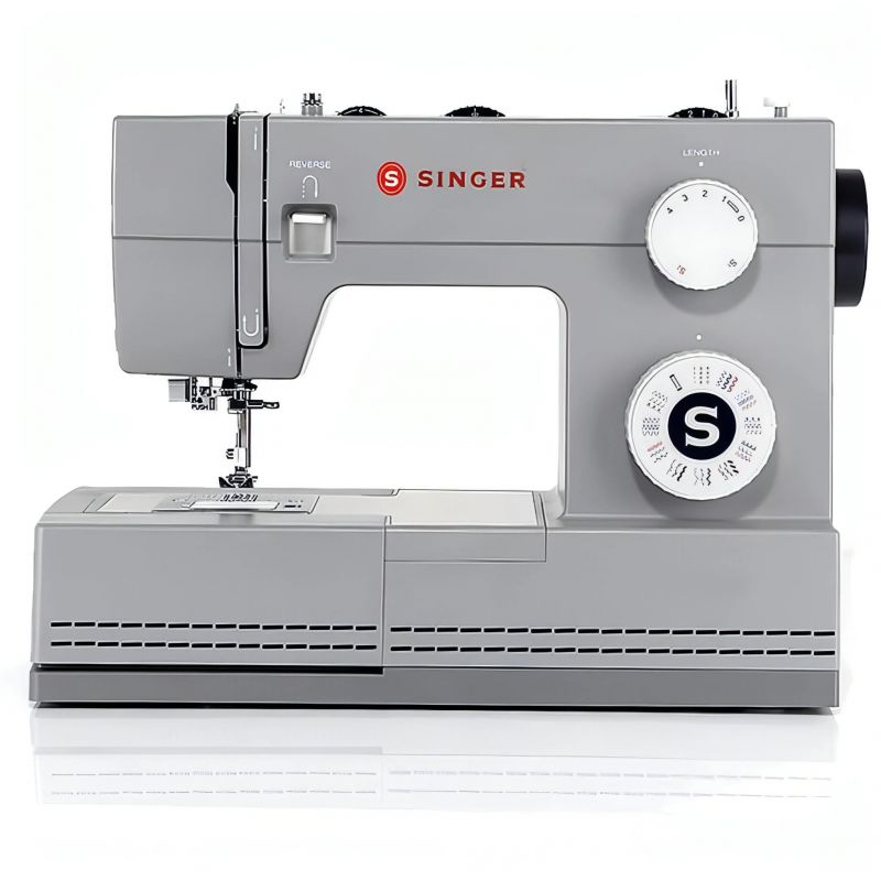 Macchina per cucire meccanica adatta per cucire tessuti pesanti come i jeans. 32 punti di cui 6 utili, 11 elasticizzati e 14 decorativi. Occhiellatore automatico 1 tempo, placca di rinforzo in acciaio, motore potenziato, 9 accessori per jeans, leva abbassa griffa e telaio in metallo.