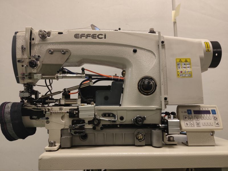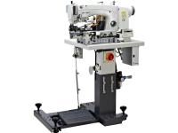 Macchina per orlo fondo jeans a braccio, con la possibilità di intercambiare il punto tra annodato e punto catenella, sostituendo le parti di cucitura con kit incluso. Grazie al trasporto con Puller superiore/inferiore e punta d’ago, garantisce punti precisi anche su tessuti pesanti con dislivelli prevenendo il danneggiamento del tessuto. La macchina è completa di alzapiedino, rasafilo automatico e guida ad apertura pneumatica. Sostegno a colonna regolabile in altezza e motore elettronico Ho-Hsing integrato.