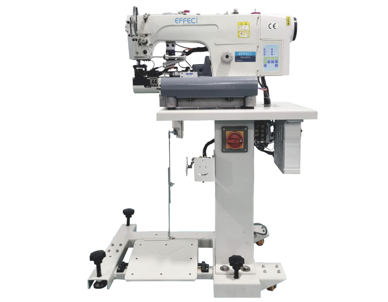 Macchina per orlo fondo jeans a braccio, con la possibilità di intercambiare il punto tra annodato e punto catenella, sostituendo le parti di cucitura con kit incluso. Grazie al trasporto con Puller superiore/inferiore e punta d’ago, garantisce punti precisi anche su tessuti pesanti con dislivelli prevenendo il danneggiamento del tessuto. La macchina è completa di alzapiedino, rasafilo automatico e guida ad apertura pneumatica. Sostegno a colonna regolabile in altezza e motore elettronico Ho-Hsing integrato.