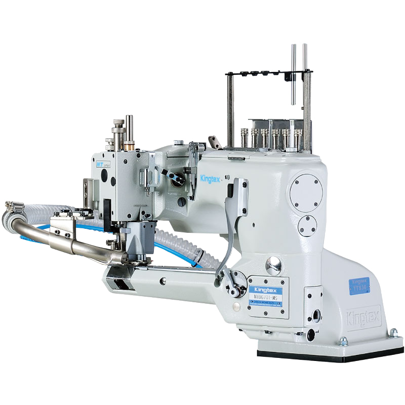 Macchina a braccio rovescio 4 aghi 6 fili con punto copertura. Motore integrato, doppio coltello, adatta a intimo e maglieria.