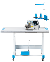 C7 URUS. Macchina tagliacuce con intelligenza artificiale che rileva automaticamente in continuo lo spessore dei materiali andando ad aumentare o diminuire la coppia del trasporto e modulando la pressione del piedino che ora è attivo durante la cucitura.