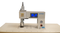 Macchina piana ad ultrasuoni con rotella computerizzata con 3 motorini passo passo indipendenti controllati dal pannello touch per la regolazione della velocità del trasporto superiore (rotella), inferiore (base rotante) e puller. Possibilità di lavorare con puller alzato o in modalità reverse (in retromarcia). Ottima per la cucitura di tessuti in fibra chimica, tessuti termo fondenti, tessuti chirurgici, tessuto non tessuto e relativi prodotti che non possono essere bucati da un ago, sostituendo la cucitura con una saldatura di tipo ad ultrasuoni continuo.