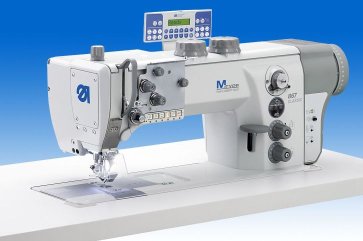 Macchine lineare punto annodato, triplice trasporto, crochet extra grande ad asse verticale per cucire e rifilare simultaneamente, dotata di rasafilo, fermatura ed alzapiedino e motore integrato DAC.